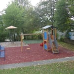 | Siedlung | 3 Wohnhäuser umgeben von Grünflächen, Spielplatz zentral |
